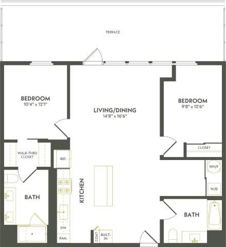 Floor plans are artist’s rendering. All dimensions are approximate. Actual product and specifications may vary in dimension or detail. Not all features are available in every rental home. Please see a representative for details.